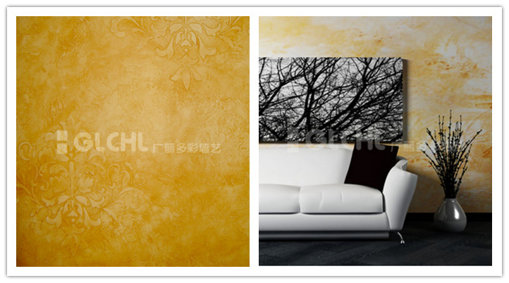 3、藝術(shù)涂料最大的賣點除了環(huán)保,就是裝飾效果了,廣麗多彩墻藝市場部王經(jīng)理介紹說:“眾所周知,墻紙有著很漂亮的花紋及質(zhì)感,但是無論多有技術(shù)的施工人員,貼出來的墻紙,都會看得出明顯的接縫,達(dá)不到完整一體的裝飾效果,而藝術(shù)涂料,除了可以做出墻紙一樣的花紋和手感,還可以實現(xiàn)顏色和花紋完全量身訂制,就是說客戶喜歡什么顏色的花,想要什么風(fēng)格的裝飾效果,都能全做出來,要讓墻面復(fù)古還是時尚,全由客戶作主,這點,目前只有墻藝藝術(shù)涂料能做到”